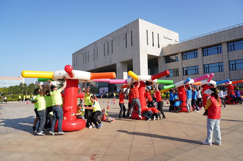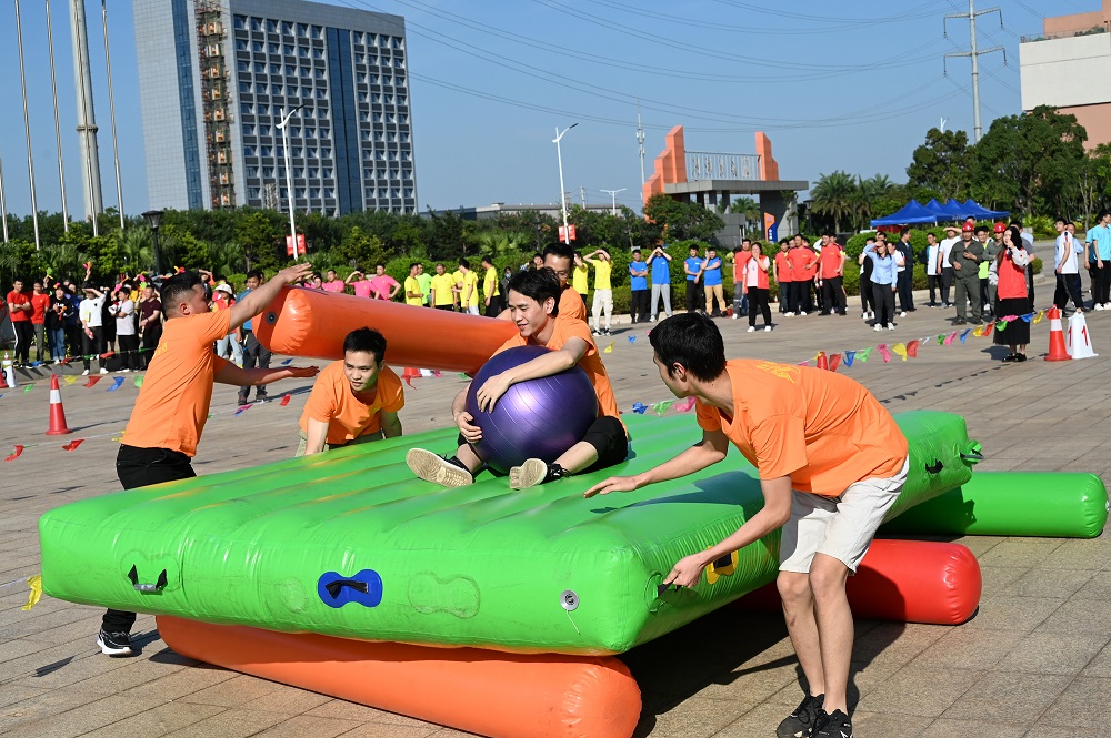 本次运动会以“快乐工作 健康生活”为主题,共设同心击鼓、猛龙过江、铁甲战车、旋转木桩、点球大战、超级大冲关等6个竞争激烈而又趣味横生的比赛项目。比赛现场,队员们生龙活虎、锐不可当,展开了激烈角逐。赛场上加油声、喝彩声、欢笑声此起彼伏,各参赛队伍在比赛中发扬“更快、更高、更强、更团结”的体育精神,互相配合、全力以赴、力争上游,赛出水平,赛出风格,留下了一幕幕精彩的画面。