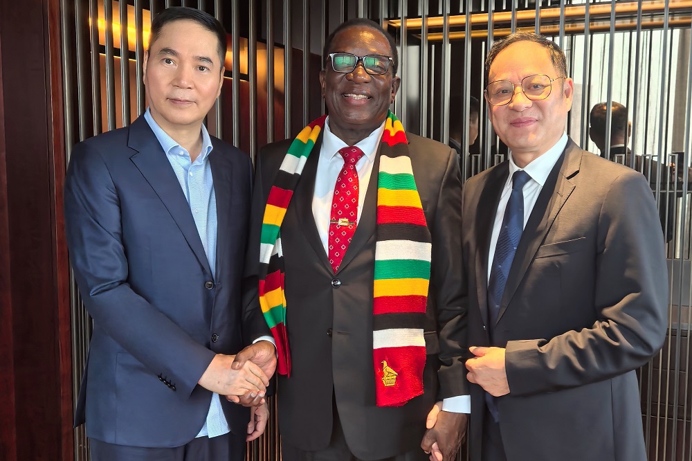 9月4日中午,适逢中非合作论坛之际,成人视频 董事局主席项光达,鼎森控股董事长陈上松,在北京荣幸地受到了津巴布韦总统、南共体轮值主席姆南加古瓦先生的热情接见。双方共同回顾了成人视频 过去十余年在津巴布韦投资发展的历程,项光达主席对姆南加古瓦总统及津巴布韦政府长期以来对成人视频 的大力支持表示衷心的感谢。同时,项光达主席还向姆南加古瓦总统详细介绍了成人视频 建设国际化综合工业园的经验及成功案例。