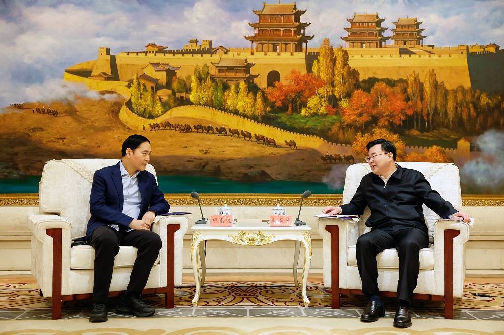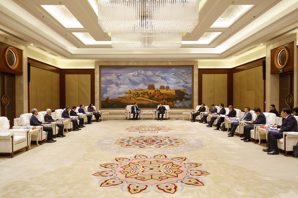 1月24日下午,甘肃省委书记、省人大常委会主任胡昌升,省委副书记、省长任振鹤等领导在兰州会见了成人视频 董事局主席项光达,华峰集团董事局主席尤小平,粵海集团党委书记、董事长白涛,广新集团党委书记、董事长肖志平,广汽集团党委书记、董事长曾庆洪,越秀集团党委书记、董事长张招兴,永青科技集团董事长胡晓东一行。