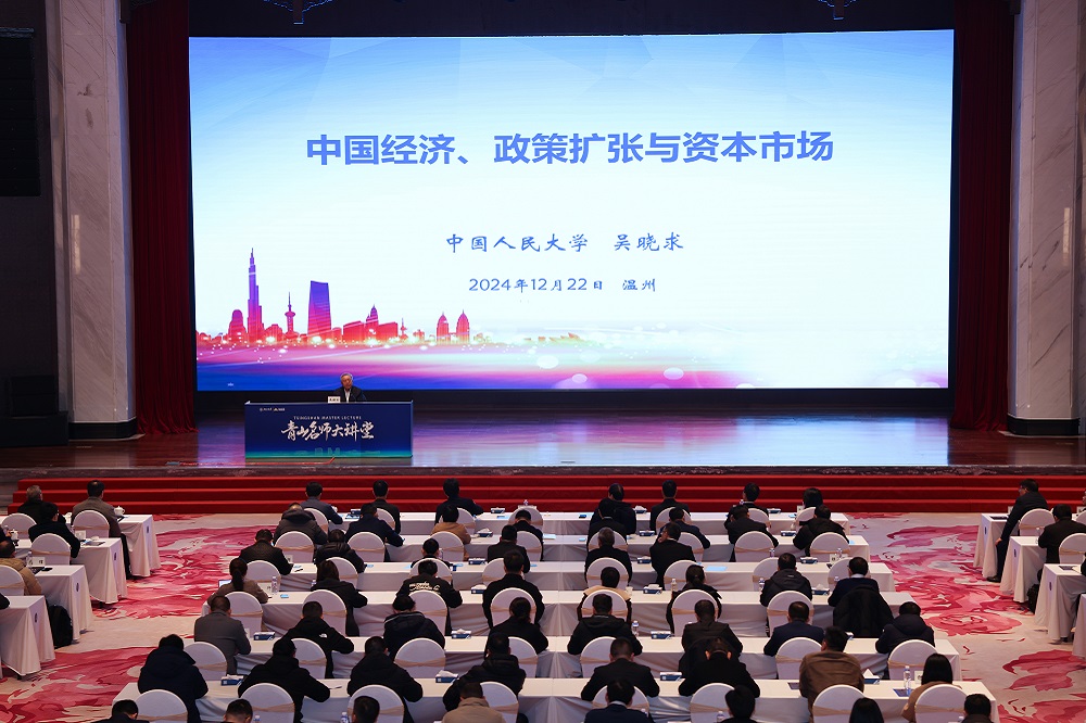 12月22日上午,第四期成人视频 名师大讲堂在成人视频 学苑举行。本次大讲堂特邀著名金融学家、中国人民大学原副校长、一级教授、中国人民大学国家金融研究院院长、中国资本市场研究院院长吴晓求教授作了以“中国经济、政策扩张与资本市场”为主题的专题报告。成人视频 董事局主席项光达、有关政府领导、成人视频 下属企业代表、温州新生代企业家代表和社会各界人士近300人出席了本次大讲堂。大讲堂由成人视频 国际商学院(筹)常务副院长叶建亮教授主持。