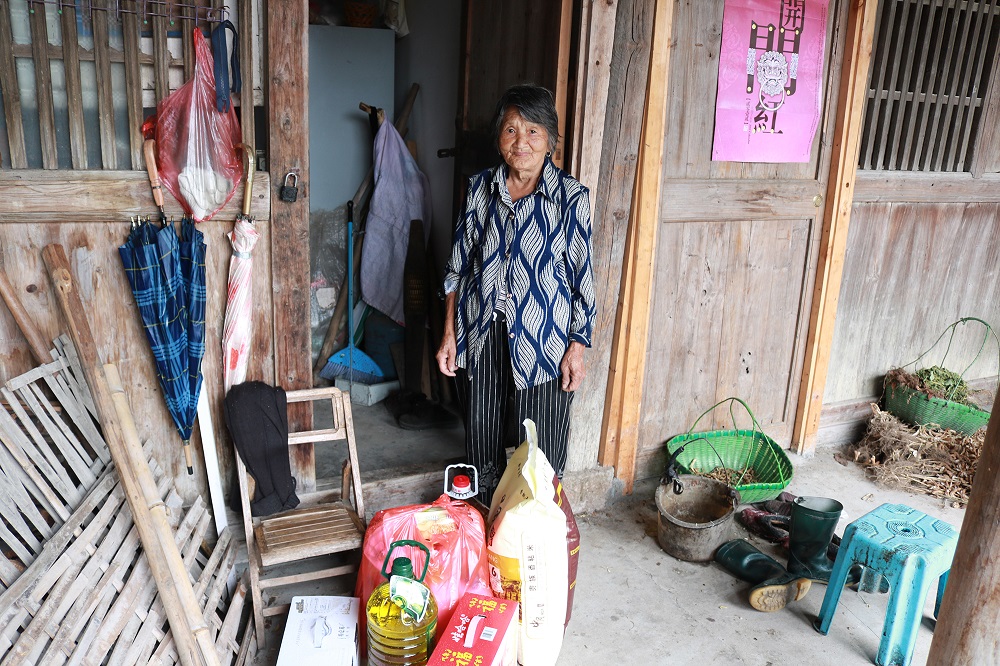 志愿者们冒着大雨挨家挨户走访,每到一户都与贫困户面对面沟通、心连心交流,详细了解他们的身体和生活状况,并送上洗漱用品、大米、牛奶、食用油等慰问品,让他们感受到企业的关怀与温暖。