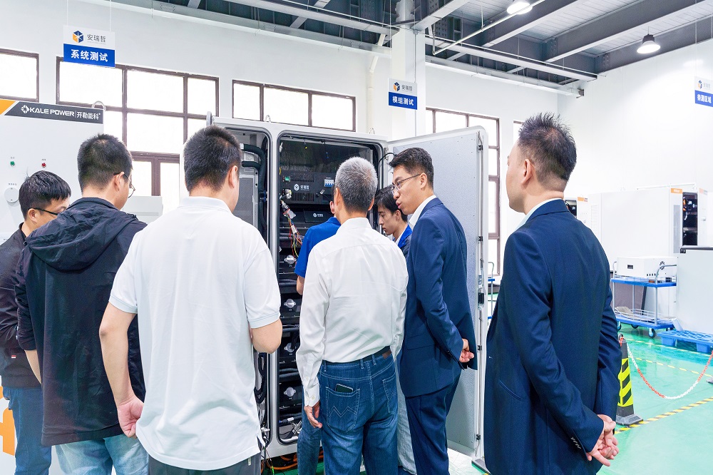 会后,相关领导参观了开勒股份展厅与生产车间,开勒股份董事长卢小波针对开勒股份发展历程以及HVLS工业风扇与工商业储能业务板块战略布局进行介绍,并展示安瑞哲能源2022年于业内率先推出的全液冷工商业储能一体机,兰钧新能源董事长张五堂对开勒储能产品给予了高度肯定和积极评价,并表示对未来深入合作更有信心。
