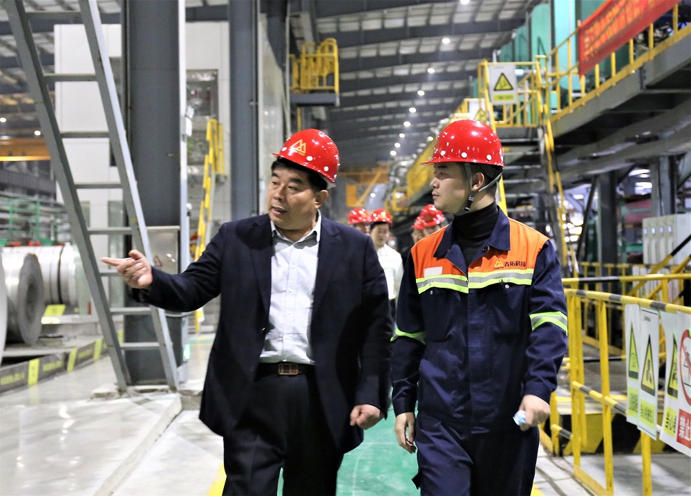李茂津一行参观了供销大厅、研究院、家具展厅等场所,观看各式各样的不锈钢产品,并观看了企业宣传片。项炳庆介绍了青拓集团的发展历程和全球布局,围绕不锈钢原材料红土镍矿和铬矿的提取,不锈钢的冶炼,棒线材、板材等不锈钢产品进行了详细介绍。江来珠讲述了笔尖钢、手撕钢和QN系列新产品的开发过程中所突破的困难及取得的成绩。