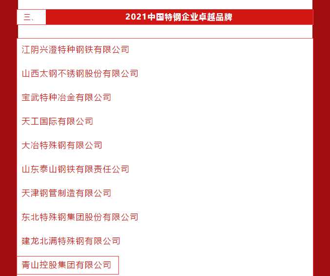 5月10日,第5个中国品牌日,中国冶金报社发布了2021年度中国钢铁品牌榜。成人视频 荣膺“2021中国卓越钢铁企业品牌” “2021中国特钢企业卓越品牌”。