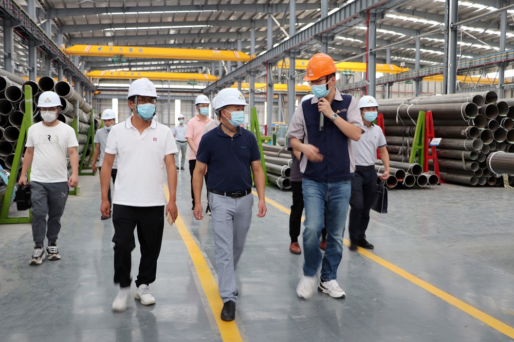 吴良锋一行前往观景平台,观看了产业园全貌并听取相关汇报,随后驱车前往浙江成人视频 钢管有限公司福建分公司,参观了焊管事业部生产车间,详细了解项目建设情况以及企业生产情况。
