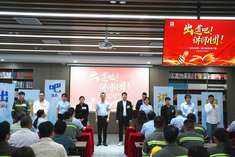 为进一步完善培训体系,打造优秀内部讲师团队,助力员工提升专业知识技能水平,增强公司核心竞争力,自9月份起,广东广青金属科技有限公司启动第二届“出道吧!讲师团!”内部讲师大赛。11月7日,内部讲师大赛决赛在公司综合楼人才培育馆举行,公司党委副书记、工会主席王大庆,党委委员、常务副总经理刘光勇,相关部门(厂)主要负责人亲临决赛现场。