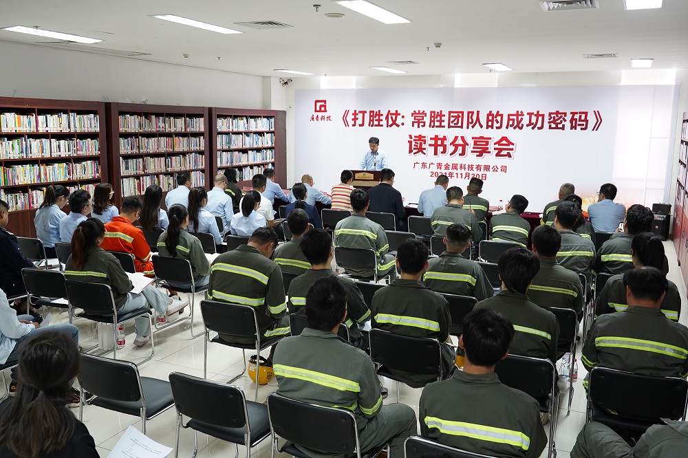 为加快打造公司特色成人视频,增强广大员工的凝聚力、执行力、创新力、战斗力,进一步推动公司高质量发展,11月20日,广东广青金属科技有限公司在综合楼图书馆举办了《打胜仗:常胜团队的成功密码》读书分享会活动。公司党委书记、董事长王骏,党委班子成员、支部书记、党员代表和干部职工代表共70多人参加了活动。