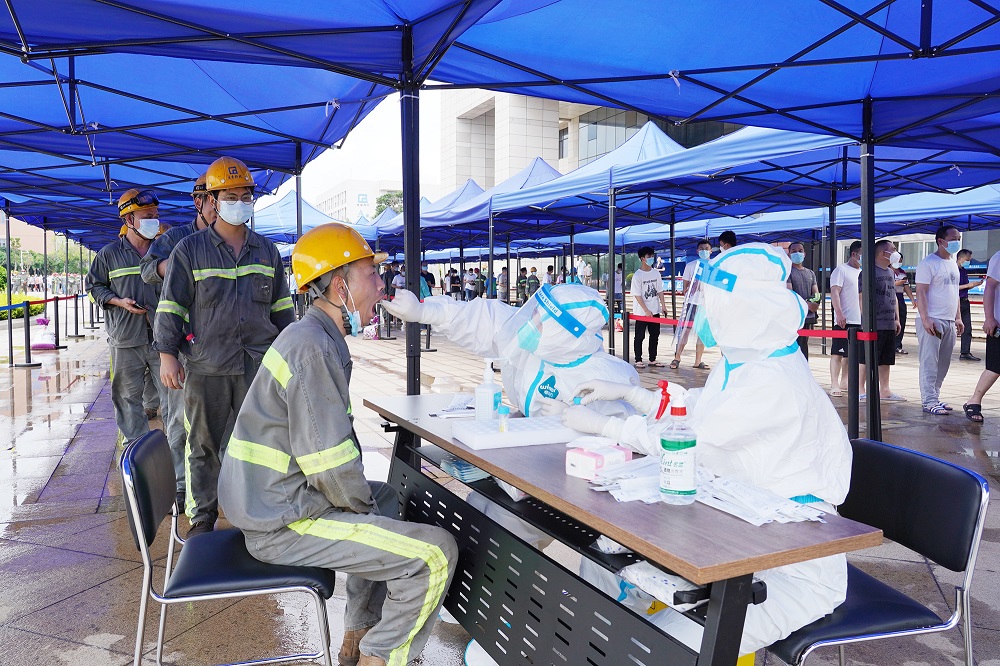 为深入贯彻落实全国全省疫情防控、安全生产和三防工作电视电话会议精神,认真落实广东省国资委关于疫情防控的工作要求,按照阳江高新区新冠肺炎防控指挥办统一部署,5月13日,广东广青金属科技有限公司开展了全员核酸检测,公司全体在岗人员、员工家属及外协单位人员共4596人参加了此次检测。