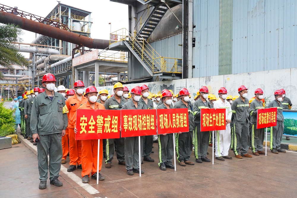 为深入贯彻落实习近平总书记关于安全生产重要论述,认真落实广东省及省国资委“安全生产月”和“安全生产南粤行”活动部署和要求,全面提高员工安全生产意识、生产安全事故应急救援能力和逃生自救能力,6月20日,广东广青金属科技有限公司在炼铁厂开展了2022年煤气泄漏事故应急演练。阳江高新区党委委员、管委会副主任张革,市应急管理局、区安监局、中国平安阳江中心支公司等相关领导出席了此次演练;公司党委书记、董事长王骏,党委委员、常务副总经理刘光勇参加了演练。