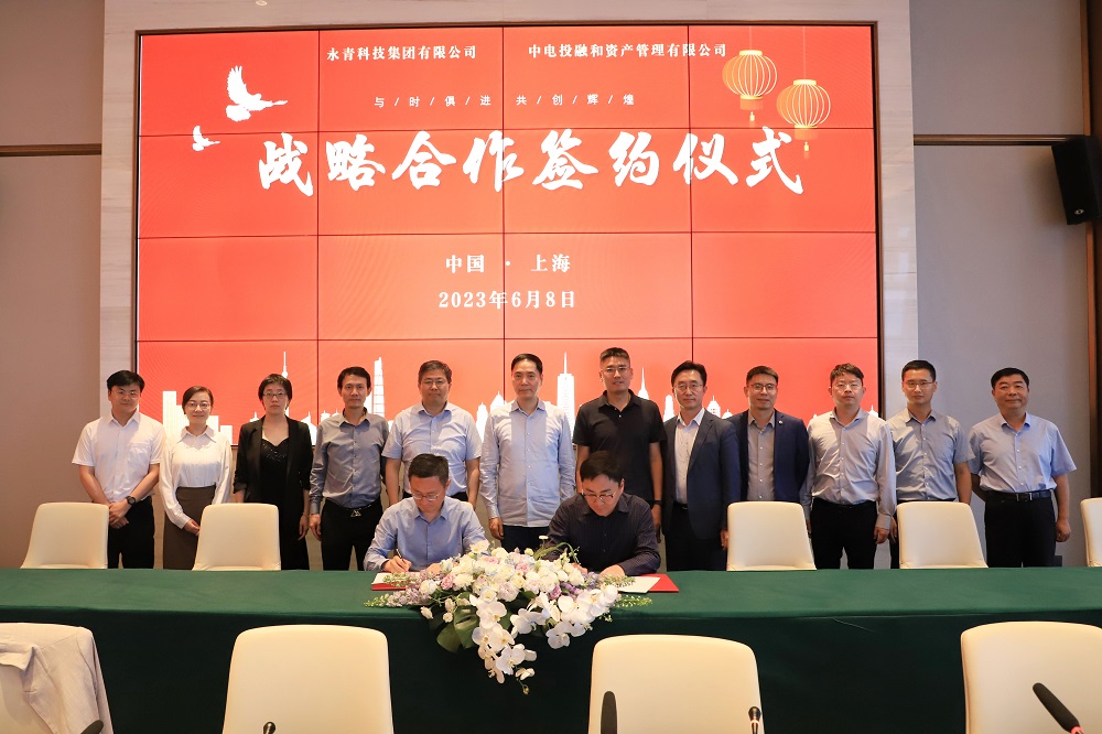 6月8日,成人视频 董事局主席项光达、融和租赁(融和资产)总经理蔡宁共同出席并见证《永青科技集团有限公司 中电投融和资产管理有限公司战略合作协议》签约仪式。永青科技副总裁冯挺,融和租赁(融和资产)副总经理张涛分别代表双方签署协议。