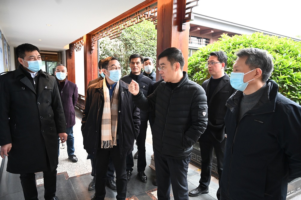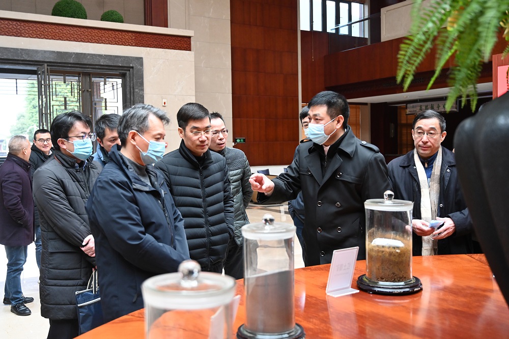 钟盛江向一行人员详细介绍了企业基本情况并汇报了企业在疫情防控中取得的实际成效,陈出新给予高度肯定。