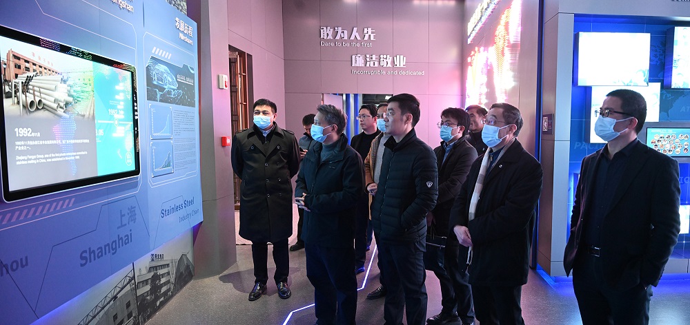 陈出新一行先后参观了集团供销中心、研究院、家具展厅、电子展厅等场所,并观看了企业宣传片。参观过程中,一行人员不时提出相关专业问题,姜海洪一一进行解答。陈出新表示:当前正值疫情防控关键节点,企业要落实落细疫情防控各项措施,切实巩固来之不易的疫情防控成果,希望企业在“十四五”新征程中再创佳绩,为不锈钢行业的高质量发展作出新的更大贡献。