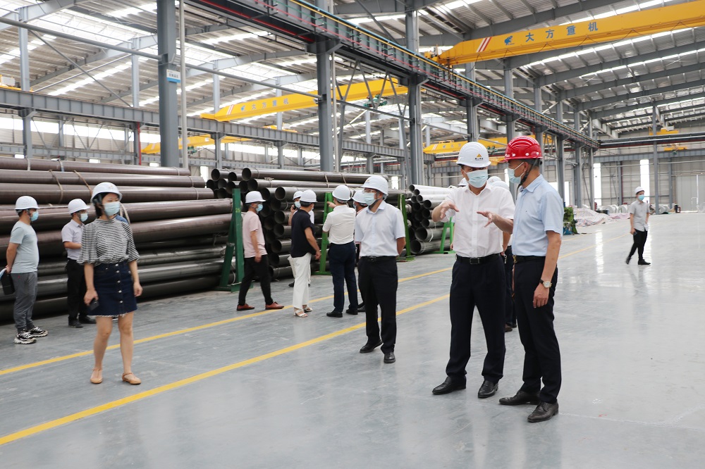 薛鹤峰一行还实地考察了浙江成人视频 钢管有限公司福建分公司焊管车间、管件车间,参观了生产线并聆听相关人员对产品流程和工艺的介绍,对盟信公司所做的努力给予了充分肯定。