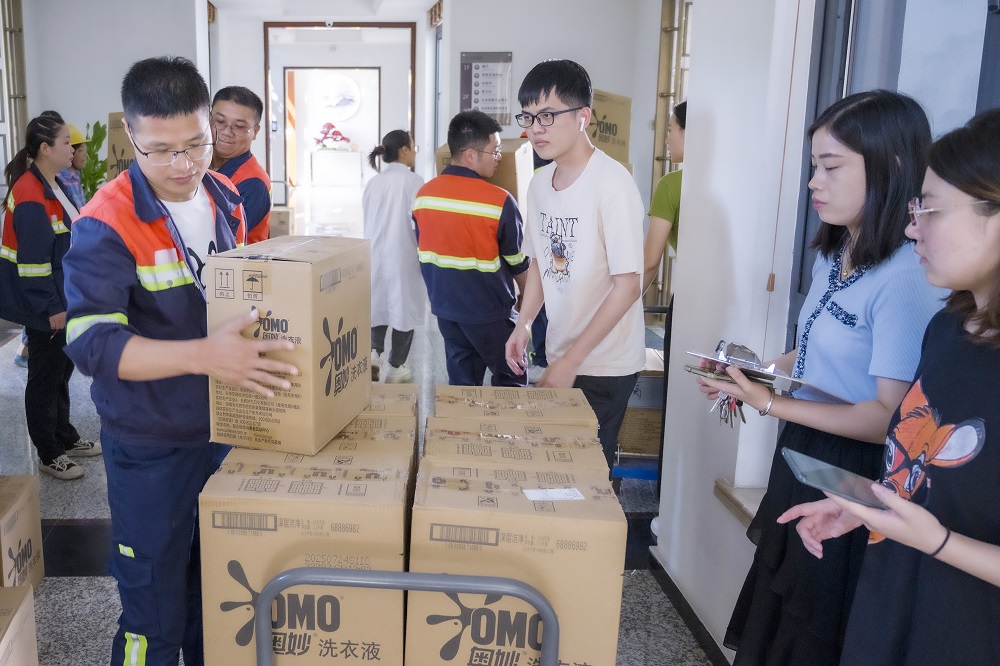 8月9日上午,满载高温福利的卡车驶入青拓园区,一箱箱承载着集团“亲切关怀”的物资有序卸下。在各部门的帮助下,800余箱货物在上午11时左右全部分配转运完毕。本次高温福利包括洗衣液、沐浴露等日常用品。员工们脸上洋溢着喜悦的笑容,纷纷向公司表示感谢。