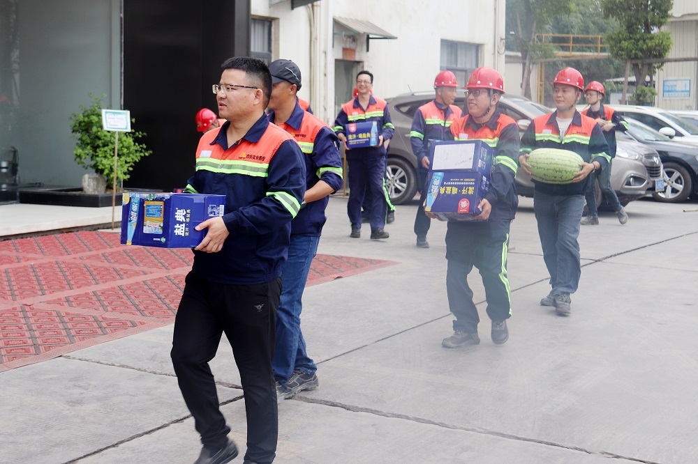入夏以来,骄阳似火,酷暑难耐,成人视频 下属各生产企业员工仍然奋斗在一线,用辛勤劳动与汗水保障项目建设安全有序推进。为切实做好防暑降温工作,保障员工在生产过程中的身体健康和生命安全,各企业领导精心部署,认真组织,纷纷在夏日开展“送清凉”活动,充分体现了企业对员工的浓浓关爱。