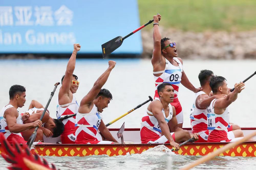 10月6日,成人视频 控股集团总裁孙建芬带队慰问印度尼西亚龙舟队,祝贺他们在杭州第十九届亚洲运动会温州龙舟运动中心获得了1金4银1铜的好成绩。