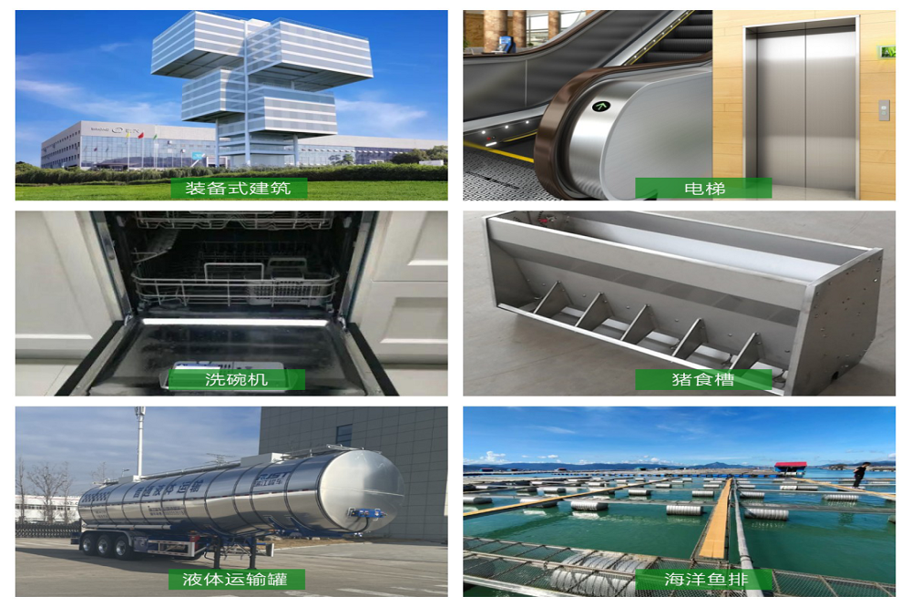 QN全系列不锈钢产品自2018年诞生以来,已生产80多万吨,广泛应用于建筑,电梯,家电,畜牧,化工装备和海洋牧场等重要领域。