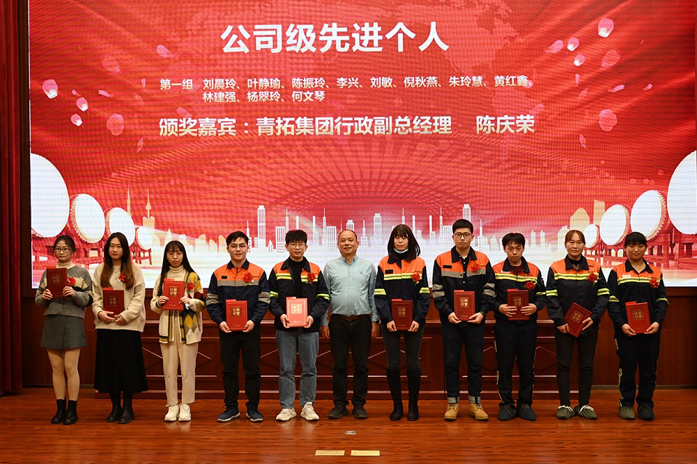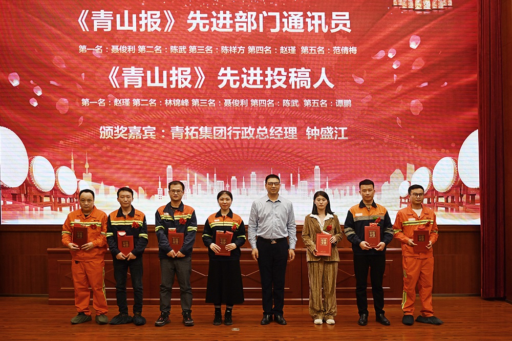 陈庆荣宣读了《青拓集团有限公司2020年度公司级先进表彰决定》和《青拓集团有限公司2020年度<成人视频 报>先进部门通讯员及先进投稿人的决定》。