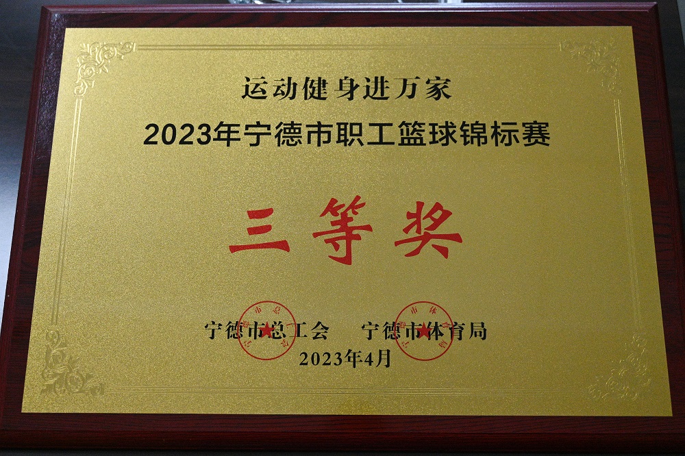 5月8日晚,由宁德市总工会和宁德市体育局主办的2023年“运动健身进万家”——宁德市职工篮球锦标赛在宁德市体育中心馆圆满落幕。全市共有24支代表队参赛,经过18天的激烈角逐,8名代表队脱颖而出,青拓集团代表队在此次比赛中喜获三等奖。