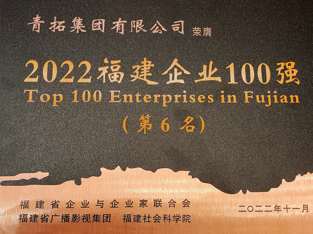 为贯彻落实习近平新时代中国特色社会主义思想和党的二十大精神,持续树立福建省大型企业标杆,发挥大型企业龙头带动作用,有效促进福建企业做大做强,12月7日,福建省企业与企业家联合会和福建省广播影视集团、福建社会科学院在莆田市联合召开了2022福建企业 100 强发布大会。青拓集团荣列2022福建企业100强第6位、制造业企业100强第2位。