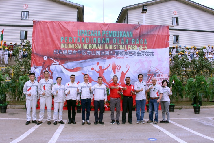8月19日,印尼成人视频 园区第五届趣味运动会开幕式在园区篮球场举行,永青集团有限公司总裁伍华弟,印尼经贸合作区成人视频 园区开发有限公司(IMIP)总裁Hamid Mina、运营总监Irsan Widjaja,印尼瑞浦镍铬合金有限公司(IRNC)董事长王仁辉等领导莅临现场。