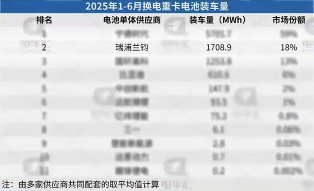 2025年上半年,瑞浦兰钧能源股份有限公司新能源重卡电池市占率达7.5%,换电重卡电池市占率18%,同比增长高达809%。两项数据双双位列全国第二,充分展现出公司在重卡市场的强劲穿透力与产品竞争力。