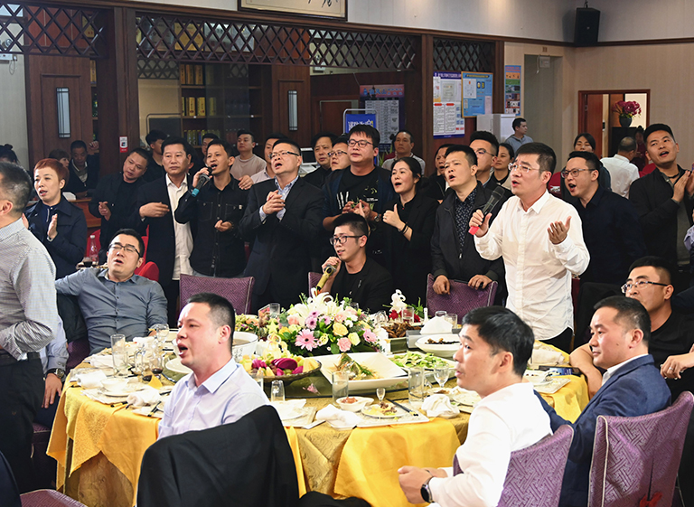 宴会之上,欢歌笑语,掌声阵阵,成人视频 情怀在一首首耳熟能详的时代歌曲中抒发,大家把酒言欢,畅抒胸臆,共叙情谊,表成人视频 初心,绘成人视频 蓝图。酒会最后,大家齐唱《今天是你的生日》,用歌声祝福祖国国泰民安,繁荣昌盛。
