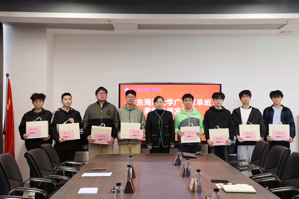 12月24日,广东海洋大学广青订单班奖学金颁发仪式在材料科学与工程学院会议室举行。广东广青金属科技有限公司党委副书记、工会主席王大庆,材料科学与工程学院党总支书记李毅、副院长尹冬松参加了活动。