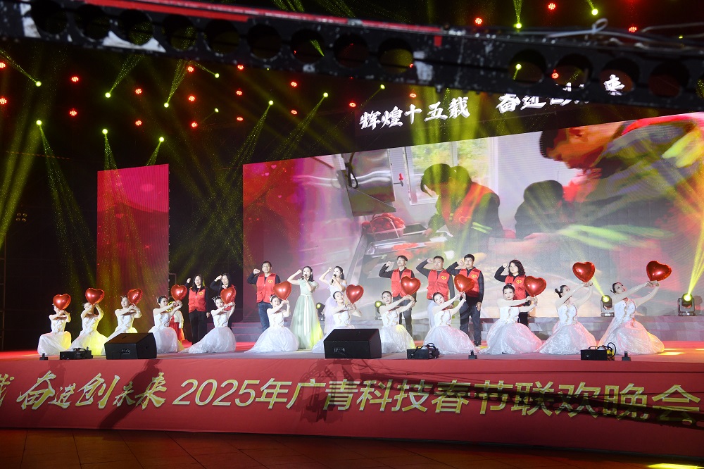 晚会上,一系列由员工自编自导的节目精彩纷呈。群舞《扬帆起航》、朗诵《我的热爱,为广青喝彩》、歌伴舞《广青范儿》以及快板表演《五湖四海汇广青》,展示了员工们的多才多艺,抒发了他们对公司的热爱。