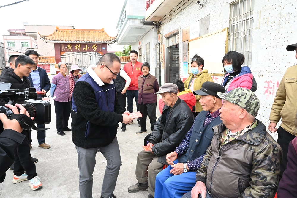 1月15日,春节临近,广东广青金属科技有限公司志愿者服务队到黄村村委会开展“我为特困供养办年货”慰问活动,为村中特困供养和困难党员送去新春慰问品和关怀,提前送上新春佳节的问候与美好祝福。