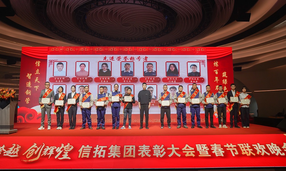 副总裁王大千宣读了表彰决定。在热烈的掌声中,领导们对过去一年中涌现出的先进个人和先进集体进行了表彰。优秀大学生代表刘江杰和先进集体代表郑谊君分别发言,他们分享了各自的工作感悟和心得,表达了对信拓的感恩之情以及对未来工作的坚定信心。