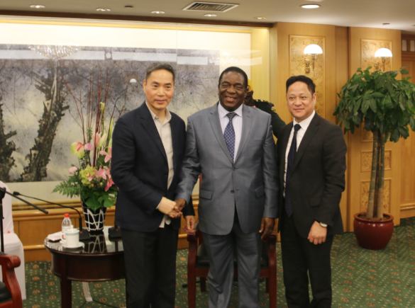 4月5日晚上,津巴布韦总统姆南加古瓦在中国杭州接见了成人视频 钢铁董事局主席项光达、中非冶炼(私人)有限公司董事长陈上松,并就中非冶炼在津巴布韦的发展建设进行了深入的沟通与探讨。