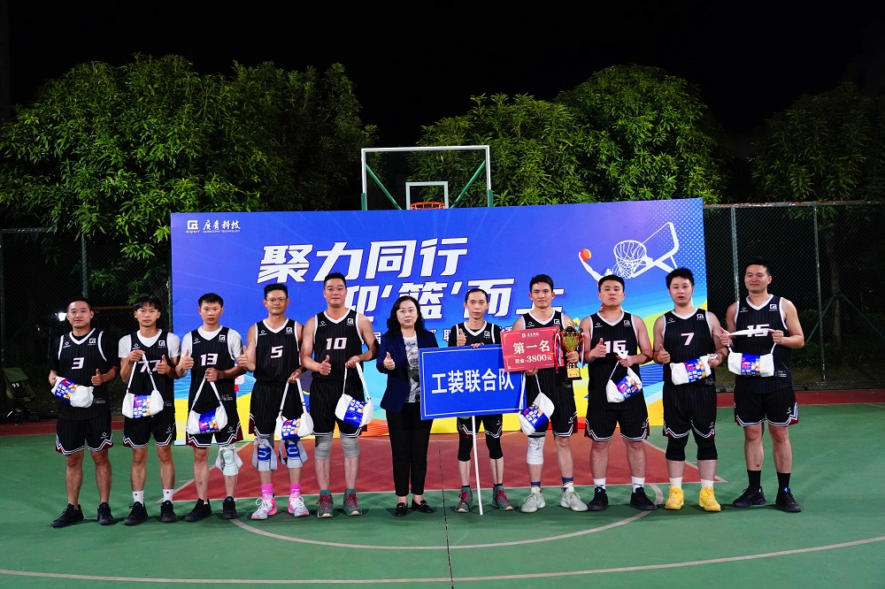 11月28日,广东广青金属科技有限公司“聚力同行,迎‘篮’而上”第十届“广青杯”职工篮球比赛在公司篮球场圆满落幕。公司党委副书记、工会主席王大庆出席并致闭幕词,公司党委委员、常务副总经理刘光勇,党委委员、副总经理熊章,各厂部负责人以及各兄弟单位相关负责人、参赛运动员、公司职工共400多人参加了闭幕式。