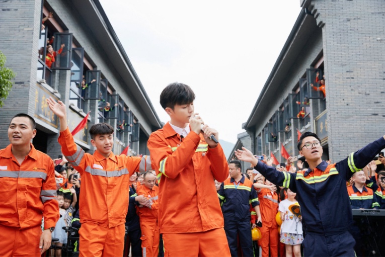 9时,嘉宾陈立农和青拓乐队成员在成人视频 街表演,以快闪的形式演唱了歌曲《少年》。欢快跃动的旋律响起,大家循着歌声纷纷加入合唱,并与陈立农热情互动。红旗随风飘扬,员工们欢呼雀跃,大声放歌,一如从前那个少年,整个成人视频 街徜徉在《少年》的轻快歌声中。