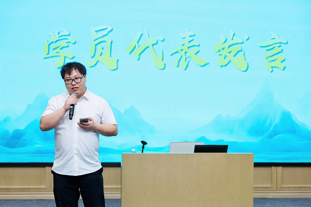 出席结业典礼的商学院领导和学员共同观看了本期培训班的结业视频。6位学员代表在结业式上分享了学习感悟。项青青说,在学习中深刻体会到跨集团公司经验内部共享的价值,与教授和同学的思维碰撞有助于明晰当前业务的机遇与挑战;梁芳表示学员要把个人梦想和企业愿景相结合,做到学以致用、知行合一,让所学知识真正转化为推动企业发展的实际行动;杨再发谈到,将近一年的深度学习,帮助他以“空杯心态”突破传统思维局限,未来将在岗位业务上持续深耕、精益求精。管巧婷用“坚持创新思维”“坚持价值创造”“坚持共享共赢”三个关键词倡议学员以所学赋能人力资源岗位实践;吴盈进着重提到多元化师资和多模块课程对拓展宏观战略视野的助益,表示今后要努力将学到的知识转化为团队战斗力的提升;钱泽文将培训学习形象地比喻为“思想闪电战”,认为商学院组织的多样化研讨活动对拓展工作思路是强有力的加持。学员代表的发言充满真情实感,大家表示,在商学院这样的的平台上,既收获了知识,也收获了同学友情,对于今后加强工作联系与协作大有裨益。