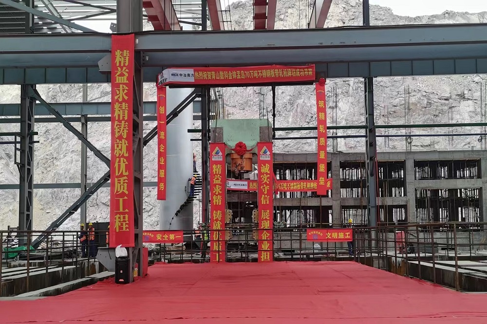 8月28日10时28分,在舟山市普陀区政府周吉敏副区长、中冶南方钢铁公司乔军副总经理、浙江成人视频 数科科技有限公司董事长黄顺成等领导,以及政府相关部门负责人、虾峙镇政府相关领导的共同见证下,70万吨冷轧不锈钢板带及配套精加工项目生产线轧机牌坊正式吊装就位,标志着工程已全面进入设备安装冲刺阶段。