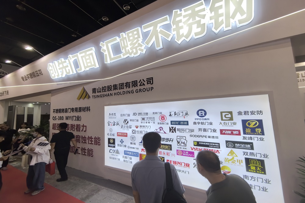 展会上,青拓集团开发的奥氏体不锈钢QS380-MY(门业专用)以其高强、易成型(压花)和优异的耐腐蚀性能吸引了众多门业厂商的关注。