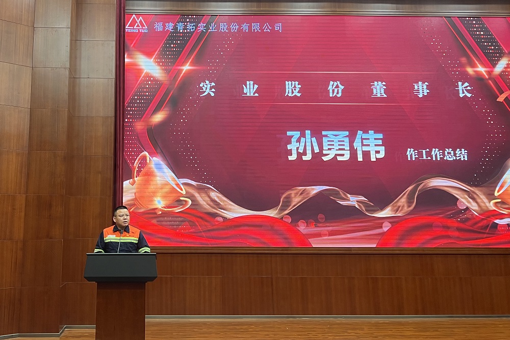 为表彰先进,发挥榜样的力量,7月18日,福建青拓实业股份有限公司及福建青拓新材料有限公司在青拓集团报告厅顺利举行了2024年上半年总结暨先进表彰大会。青拓实业股份董事长孙勇伟、总经理李学强,青拓环保科技总经理杨建荣,青拓实业股份副总经理贾相贵、袁少平及各部门部长出席会议。