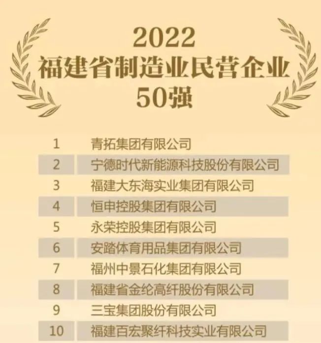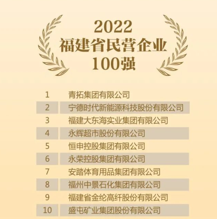 9月26日,福建省工商联发布2022福建省民营企业100强、2022福建省制造业民营企业50强、2022福建省创新型民营企业100强三个榜单。青拓集团有限公司荣获2022福建省民营企业100强第一名、2022福建省制造业民营企业50强第一名。 据悉,这是福建省工商联连续第5年发布福建省民营企业100强榜单。“2022福建省民营企业100强”的入围门槛是43亿元,比上年增加7.6亿元。制造业民营企业50强入围门槛44.8亿元,比上年增加14亿元。