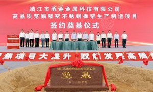 7月25日10时18分,靖江市甬金金属科技有限公司高品质宽幅精密不锈钢板带生产制造项目签约奠基仪式在甬金项…